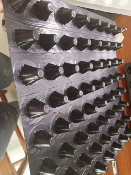 新升级双面蓄排水板采用通用工程高级塑料PE吸塑工艺,不老化,抗压超强(盖土后更稳定),无须担心施工时会踩坏压扁。