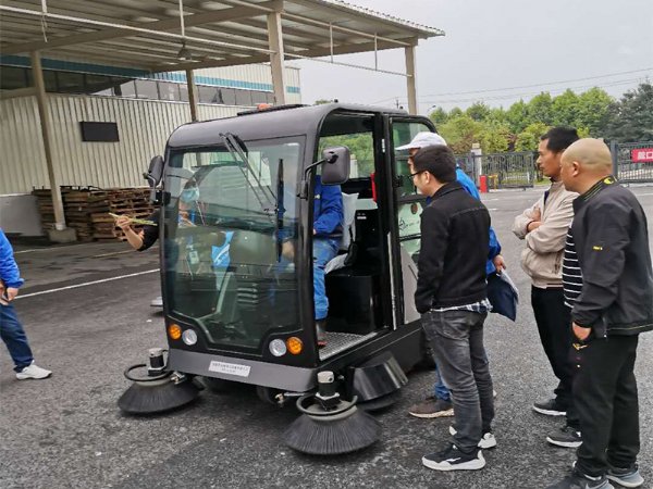 扫地车为吸尘、扫地、喷水相结合的自动清洁一体机。