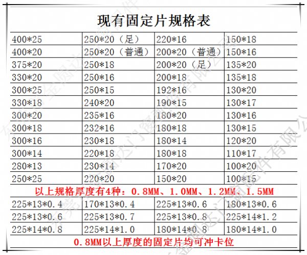 该产品广泛用在铝塑门窗与墙体的加固连接处,使门窗更加坚固不易变形,另外可以更好的配合其它配件的安装。本品五孔,规格多样,常用的有:170*13*0.6MM,230*13*0.6(0.8、1.0)MM等,您也可以提供不同的尺寸定制。