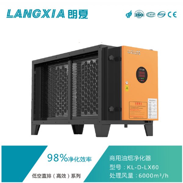 餐厅油烟净化器,智能油烟净化装置,朗夏资质齐全,欢迎采购或成为我们产品代理。朗夏油烟净化器外壳采用P55权威认证1.2mm碳
