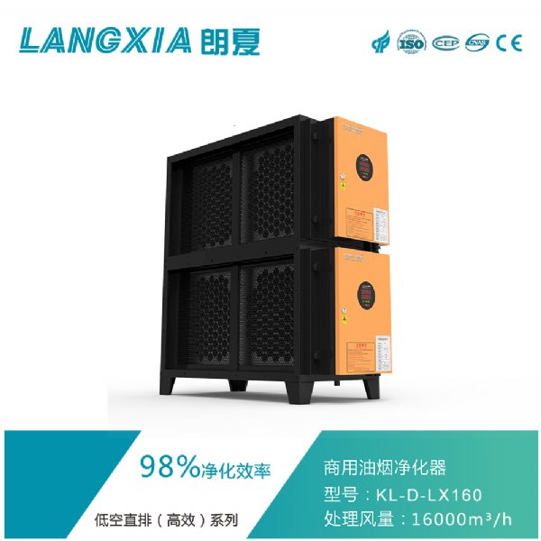 朗夏油烟净化器带有通信接口以及云端服务器,可以实现多台设备集中监控和控制,适用大客户以及*机关的维保活动和对大气环境把控。