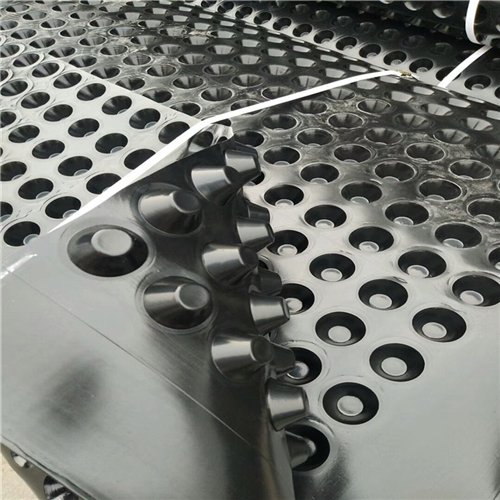 排水板是pe膜底板经过冲压后制成圆锥突台或者加劲肋的凸点而成。它具有受力不容易产生变形,是集排水、蓄水功能于一体的排水材料。采用的原材料为全新pe热塑性树脂,它具有*、无味、无臭的特性,同时具有良好的耐热性和耐寒性。有较高的刚性和韧性,机械强度好,耐环境应力开裂与耐撕裂强度高。还具有在土中、水中**降解、抗老化、抗紫外线、耐高温、耐腐蚀、保持长久材质无变化的特点。