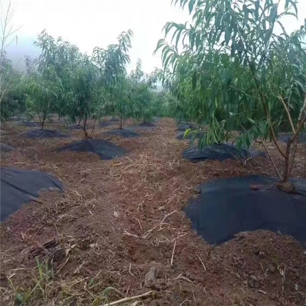 黑色园艺地布可以阻止阳光对地面的直接照射,同时其本身坚固的结构能阻止杂草穿过地布,从而了地布对杂草生长的作用。特别是在丘陵山地果园中,地面不平、石块较多,地膜、生草、人工除草等措施难以实现,园艺地布控制杂草显示出巨大优势。