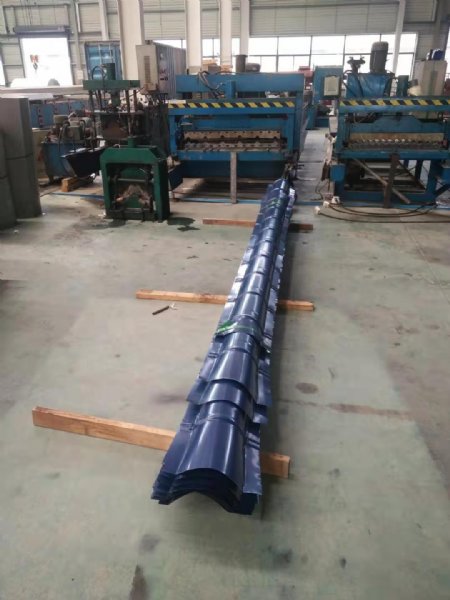 屋面瓦按角度和长度切断后底部安装接水处理的施工.首先在瓦的下面安装接水材料(即天沟),然后用防水