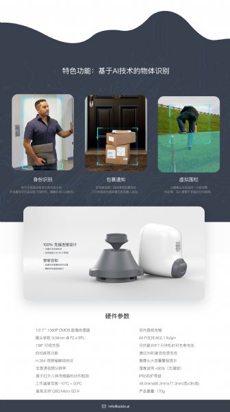 人脸识别电子围栏等 AI功能◆ IP65防尘防水设计,安装方便,可随意吸附在带铁的物体上。