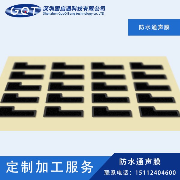 防水透声膜是一种经过特殊工艺加工形成的多微孔膜,多被贴附在防水电子设备声学模块出音口上,能做设备接触溅液、或灰尘以及暂时侵入水时为设备提供压力排放和平衡功能,起到防水透声作用。声音透过膜层都会造成声音的衰减,防水透声膜一般要求声音损耗小于等于2db,所以透声膜的技术要求很高,市面上的防水透声膜种类很多,选择材质这方面是很重要的,GQT防水透声膜材质是IP67以上防水防尘透气能够保持产品声音品质不变,同时能达到美观的外罩。