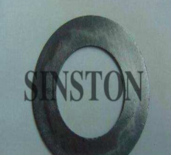 石墨板冲压或切割而成的。增强石墨垫片常用的内层增强材料有ss304,ss316或马口铁等,厚度0.05~0.2mm,形式有冲刺板增强复合垫片,网板增强复合垫片,平板增强复合垫片。石墨复合垫片可以制作成各种各样的圆型和各种形状复杂几何图形垫片,如
