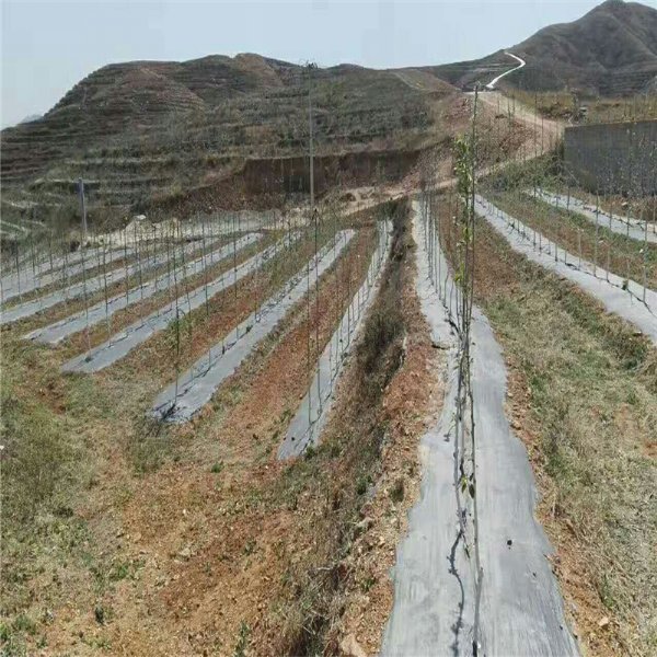 果园地面覆盖黑色编织型抑草布,具有透气性好、渗水快、防治杂草生长、阻止根系钻出地面、寿命长的特点,该地面
