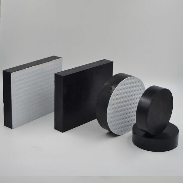 圆板式橡胶支座由若干层橡胶片与薄钢板经加压硫化而成。有足够的竖向刚度,满足垂直荷载,同时具有良好的弹性以适应梁端的转动。具有较大的剪切变形以满足上部构造的水平位移;并且具有良好的防震作用,可减轻动载对上部构造与墩台的冲击作用。构造简单,安装方便,价格低廉,养护简便,易于更换。