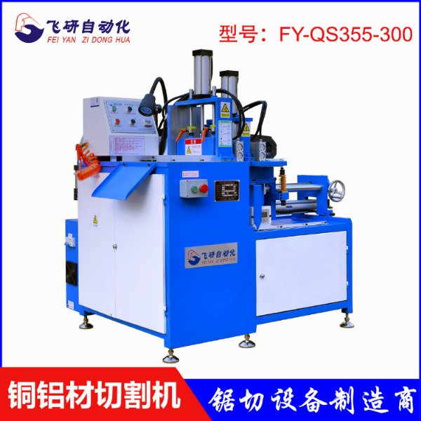 铝型材切割机,让广大的用户可根据所需要切割材料的尺寸来选择,公司生产的机型有半自动切铝机、全自动的、数控的、气动送料、全液压的等。而FY-QS355-300全自动铝型材切割机是我们全自动切铝机中的其中一款机型,一款专门针对锯切短料,小料,量大开发设计.锯切断面光洁无毛刺,无需二次加工.高效率,高精度.适合锯切各种异型非铁金属、铝、铝合金、铜、