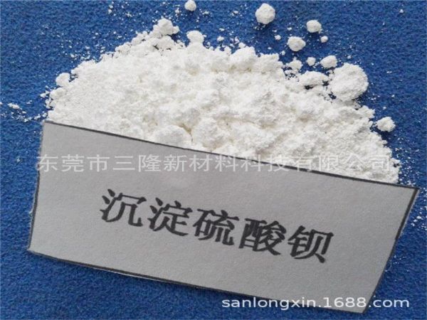电池的原料或填充剂,橡胶制品中既作填充剂,又起补强作用,聚氯乙烷树脂中作填充剂和增重剂,印像纸及铜板纸的表面涂布剂,纺织工业用的上浆剂。玻璃制品用作澄清剂,能起消泡和增加光泽的作用。可作为防放射线用的防护壁材。还用于陶瓷、搪瓷、香料和颜料等行业。也是制造其他钡盐的原料料——粉末涂料、油漆、 船用