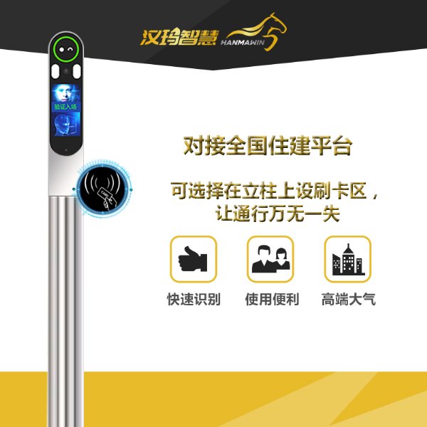 汉玛智慧动态人脸识别终端可与闸机结合形成完整的解决方案,适用于各行各业,例如工地实名制、人脸识别