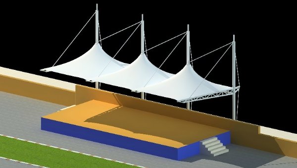 膜结构看台领域的加工安装,可承接河南省内外学校主席台顶棚等各类