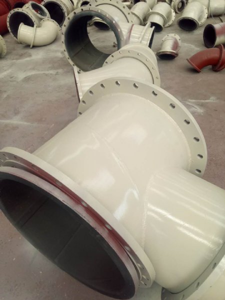 衬胶管道橡胶衬里在未硫化前,可按任意形状自由变形,因此可以在复杂设备上进行衬里施工,橡胶与金属本体的粘接强度高,橡胶之间互相结合,经硫化后,可成为一体。