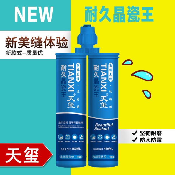 天玺晶瓷王,进口原料,净味环保配方,施工便捷,不变色,不流挂,不发黑,专业美缝打造健康家居