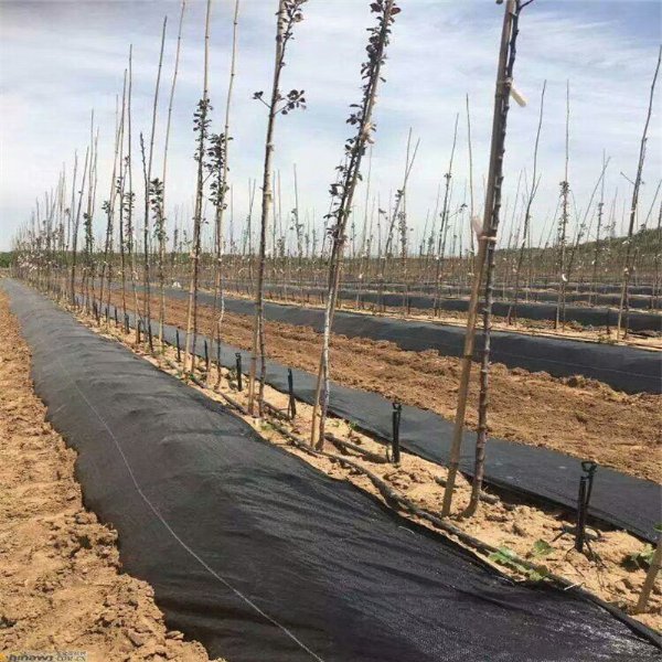 防草布铺设时间:在冬季比较暖和、冻土层浅、风大的果园以秋末冬初覆布为好,于果园秋施基肥后立即进行,至土壤冻结前完成;在冬季比较寒冷、冻土层较深、风小的果园以春季覆布为好,在土壤5 cm厚的表土解冻后立即进行,越早越好。