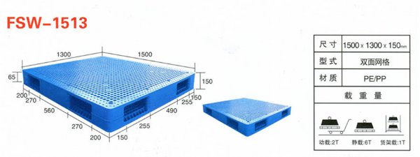 注:双面塑料托盘不能用地牛拖车使用,所以购选时要注意,并且塑料托盘要在冷库或者长时间低温的环境下使用时,要选择全新料生产的产品,这样的产品才能符合低温的要求。