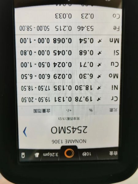 主要成分:254SMo含碳(C)≤0.02,锰(Mn)≤1.00,镍(Ni)17.5~18.5,硅(Si)≤0.8磷(P)≤0.03,硫(S)≤0.01,铬(Cr)19.5~20.5,铜(Cu)0.5~1.0,钼(Mo)6.0~6.5