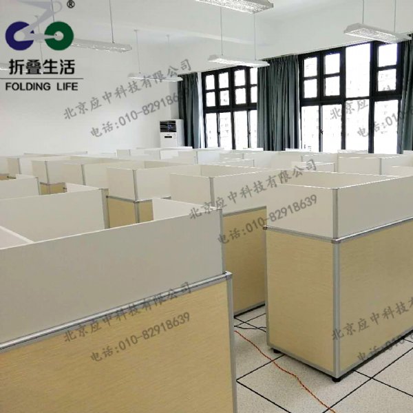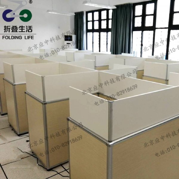 多功能语音听说考试升降屏风电脑桌给更多的学校考试环境带去方便,因为桌起到交互空间的作用,在考试的时候屏风升起,不需要屏风的时候降落,实现了一桌多用,屏风的吸音效果更保证了考试的准确性和公平性。