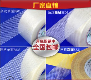 条纹纤维胶带 网格纤维胶带 双面纤维胶带上海厂家直销