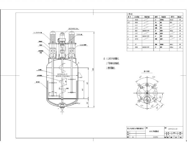 2、反应容器(釜体):根据容量大小及物料反应要求设计压力来确定板材厚薄;材质一般为不锈钢(
