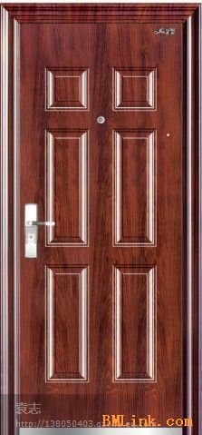 镀锌钢板制成,表面采用先进的热转印工艺制作成为各种高品质的木纹效果,并可根据客户要求做成各种造型,如四格,六格,八格,四格半等,门扇内有槽型骨架,门扇内填充