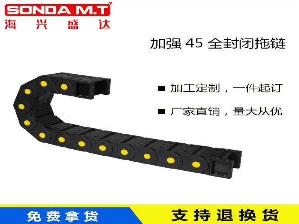 (2)工程塑料拖链的每一节都能打开,便于安装和维修。运动时噪音低、耐磨,可高速运动。