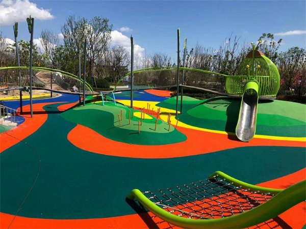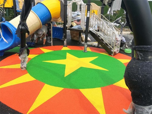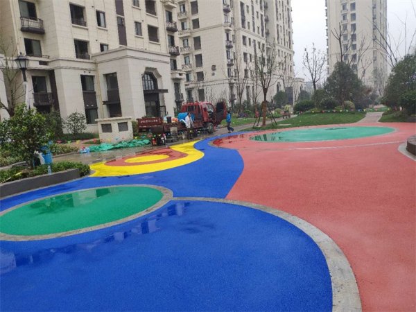 橡胶颗粒后,经由施工机械控制厚度铺设。并在其表面以EPDM颗粒与同色聚氨酯面漆混合喷涂覆盖在施工好的白色EPDM颗粒底层上,形成特殊的有组织的纹路,赋予面层正确的附着力和抗滑阻力。经机械铺装的跑道材平整度佳,成型后材料内含有多孔,使雨后不积水,能立即投入使用,使用效益,较高性价比。(1)