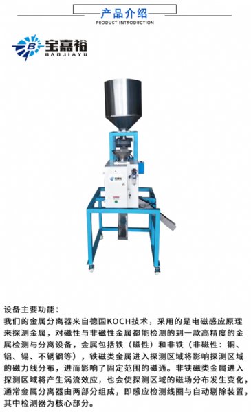 交易须知东莞宝嘉裕胶原料金属分离器自动上料产品特点