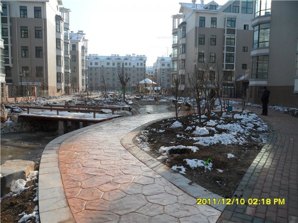 彩色路面现浇压花地坪纹理与基层浑然一体,解决了常规铺装难以克服的表层松动和中空造成的易破裂现象;表体平整,保留了