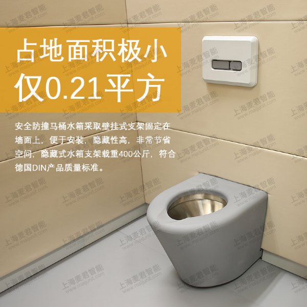 水箱采取壁挂式支架固定在墙面上,便于安装,隐藏性高,占地面积极小,面积0.21平方,非常节省空间,隐藏式水箱支架载重400公斤,符合德国DIN产品质量标准。
