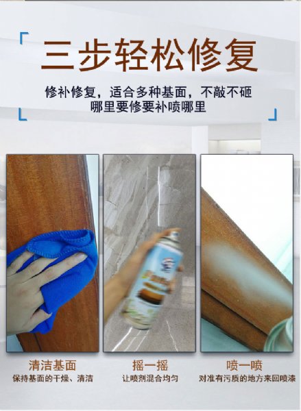 油漆磕碰划痕修补,也可以用于家具翻新。更具有防霉变,防脏。细微的油漆刮蹭破损,也能直接修补。