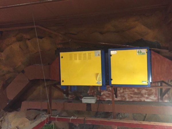 静电油烟净化器,其中部分较大的油雾滴、油污颗粒在均流板上由于机械碰撞、阻留而被捕集。当气流进入高压静电场时,在高压电场的作用下,油烟气体电离,油雾荷电,大部分得以降解炭化;少部分微小油粒在吸附电场的电场力及气流作用下向电场的正负极板运动被收集在极板上,并在自身重力的作用下流到集油盘,经排油通道排出,余下的微米级油雾被电场降解成二氧化碳和水,*终排出洁净空气;同时在