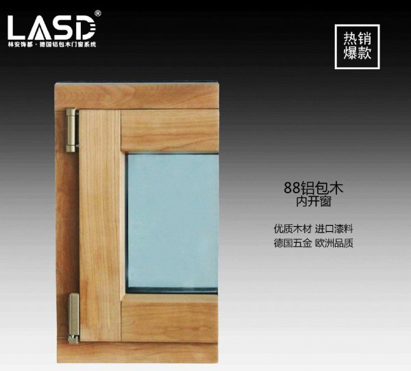 华兴节能门窗HA90R铝包木内开窗,安全防水 保温隔音