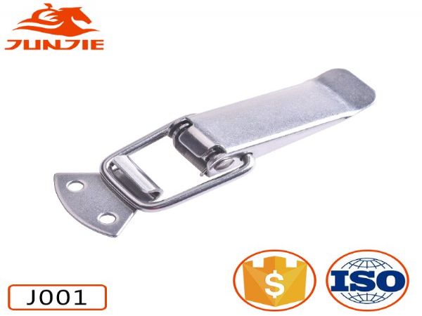 冷轧板材料,表面镀镍/镀锌/镀铬/电泳/振光,做工精细。质量稳定可以承受数万次开启,安装0筒易,使用方便。是所有高档产品商家所需求的包装进出口箱所需求的配件。锁扣具有重型拉力作用,在强烈振动下可以紧扣不易松动,脱落,变型。