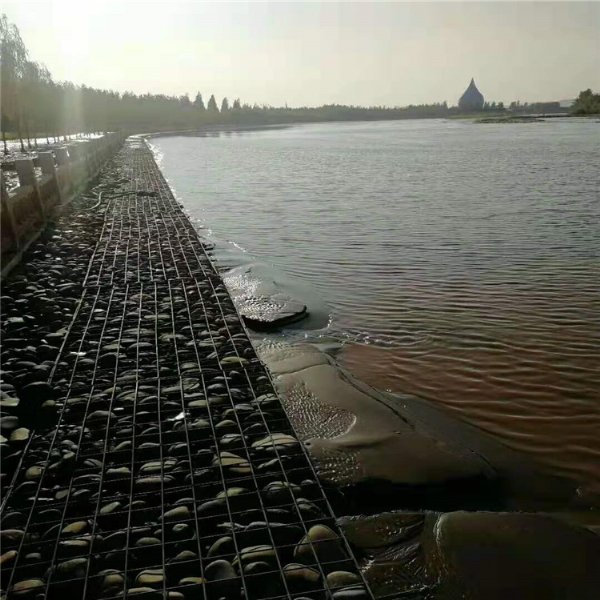 六角网组装成箱笼状,在工程现场向箱笼内填充一定规格的,满足一定要求的石料,以形成自透水的、柔性的、生态的防护结构。
