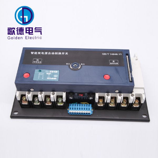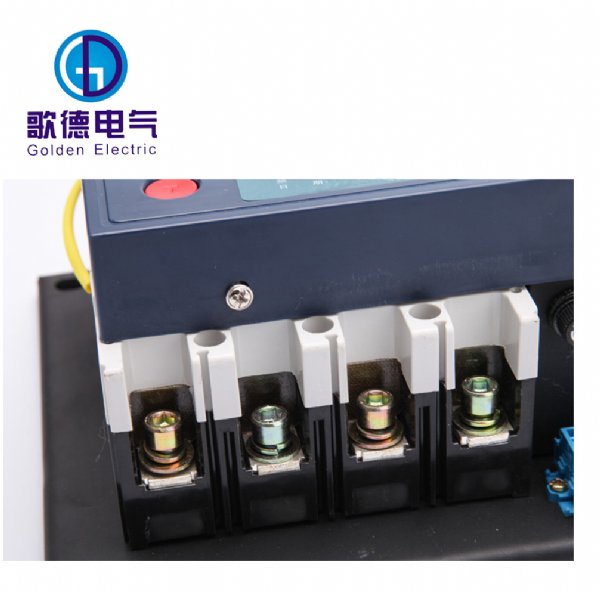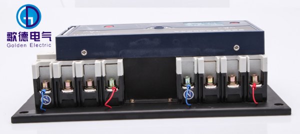 断路器有机械联锁和电气联锁双重保护,电压鉴别和断相保护取样常用备用电源进线端,当常用电源正常时,开关工作在自动档时,保证常用电源接通负载,当常用电源恢复正常时,将负载换接返回常用电源。