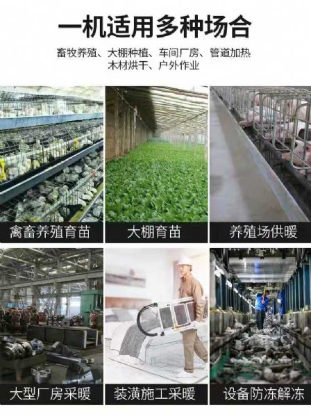 炼钢液压、机械维修、结冰防冻、防潮防湿、产品烘干、暖风暖房、冻土地带、冬季施工。