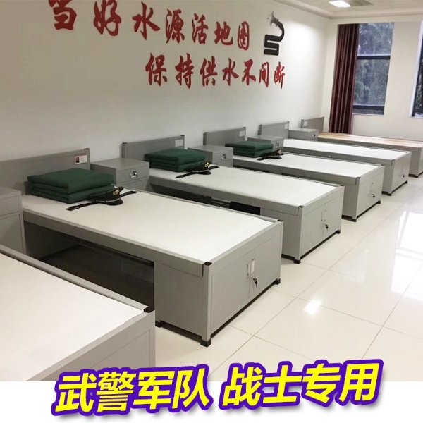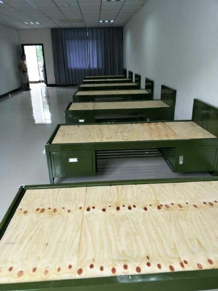 上下铺铁床 军用床、军官柜、士兵柜、军用学习桌、军用学习椅、组合营具等部队办公家具的设计、研发、生产、销售、服务于一体的企业。