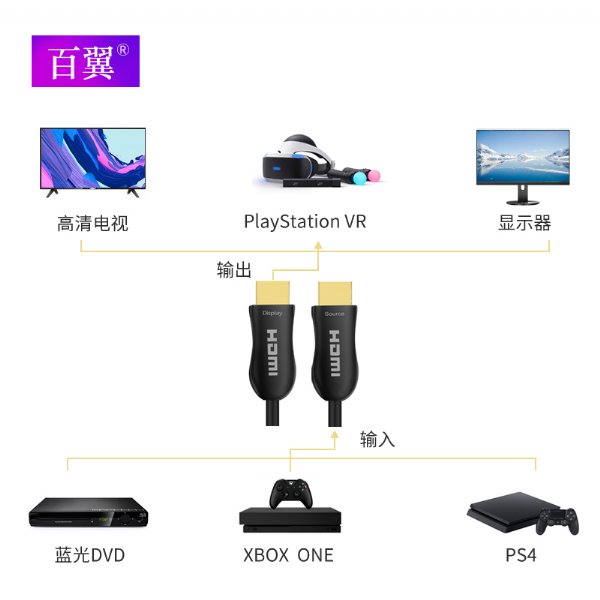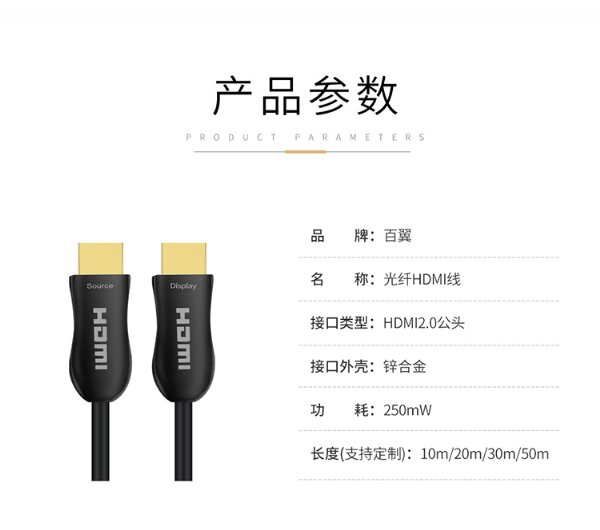 HDMI光纤线2.0版工程级数字高清线4K60Hz 投影仪笔记本电脑电视家庭影院