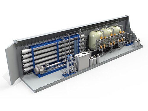 海水淡化设备所有模块精巧安装于于一个标准集装箱内(40尺或者20尺柜),不仅利于运输,而且利于现场的吊装、安放和迅速投入使用,在运行管理上也大为方便,更是主要的避免了高压