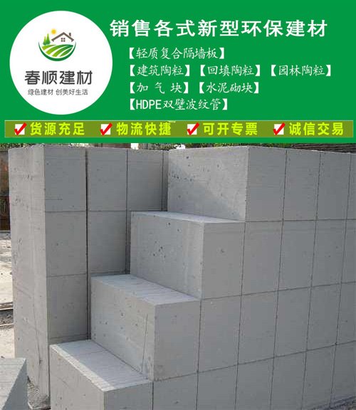 江西春顺建材装饰有限公司,作为江西抚州市一家销售加气块的工厂,我们本着服务至上,实事求事,双赢才是生意的原则,为广大建筑公司,设计公司,施工方,总包方,个体,企业等提供价格优惠的加气块,水泥砌砖。