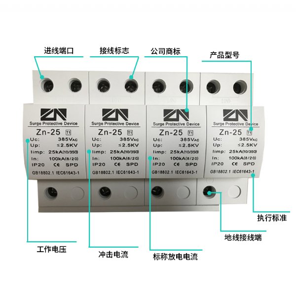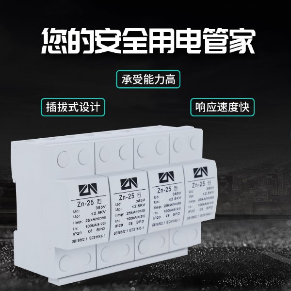 电源电涌保护器采用阻燃材料外壳设计,安装简单,维护方便。内部采用多层高能石墨电极与高耐热性的特氟纶隔环组成,确保了火花间隙的安全距离,残压低,通流量大,响应时间快。适应于电压波动较大的中国电网,适用于TN、TT、IT等多种供电制式。