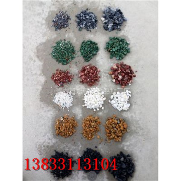 天然彩色石子是由太行山里的大理石或黄岗岩等矿石经精选,破碎,粉碎,分级,除杂,包装等多道工序加工而成,颜色自然,不含任何染料,具有*,无味,*,抗腐蚀,耐酸碱,抗暴晒,不变色等特点。