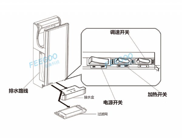 ■高效:独创的气流供应系统,双面喷射的高速气流,5~7秒快速干手