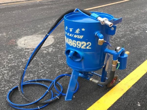 2.关闭排气开关和排水开关,将筛过的磨料加入罐内(不要高于罐体的4/5,否则将影响封闭阀的寿命);