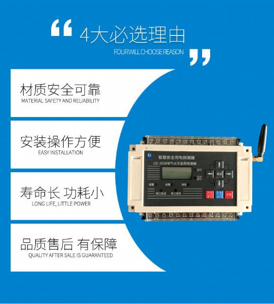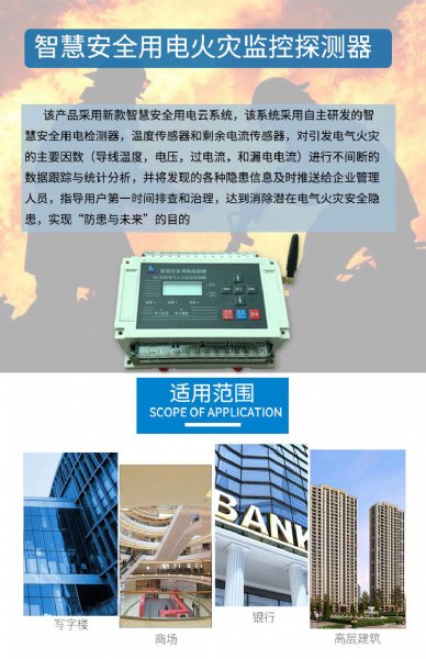 产品功能:温度监测功能,故障/报警/脱扣功能,二总线通讯功能,数码显示功能,报警延时功能,消防联动功能。