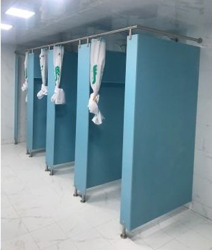 湖北美术学院公共淋浴间隔断采用的是PVC,PVC板隔断板其化学成分是