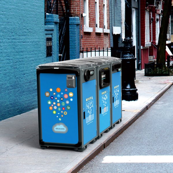垃圾箱为组合式多分类垃圾箱,模块化箱体组合方便快捷。瓶类垃圾、其他垃圾和纸类垃圾单独分开投放,方便瓶类垃圾、纸类垃圾的回收利用和其他垃圾的清运处理。箱体内置感应压缩模块,当桶内垃圾达到一定量,垃圾自动被压缩,内桶因此可以容纳多倍的垃圾。