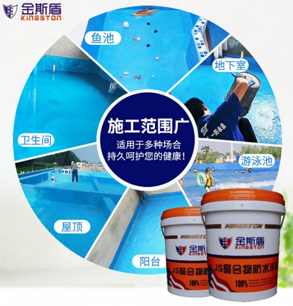 金斯盾JS聚合物防水涂料是采用进口高性能乳液,经各种助剂改性之后可与水泥等无机粉料配置而成的防水材料。本产品经与水泥按一定比例混合成粘稠状涂料,涂2至3遍之后经固化成为橡胶状弹性防水层。经固化形成的防水膜,延伸性好,强度大、具有优良的耐水性、粘结性、耐老化性剂抗渗性。该产品*、*、施工方便,可用于潮湿基层。